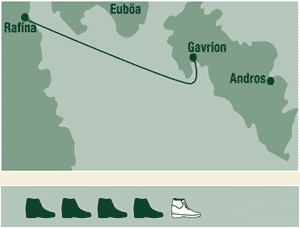 10 Reisetage 1. Tag: Flug nach Athen eventuell weiter nach Andros. 2. Tag: Tag zum Eingewöhnen mit einem Spaziergang zum Minikatarrakt Pitharia (1 Std. hin und zurück). Eventuell kommen Sie erst heute in Andros an und hatten eine Zwischenübernachtung auf dem Festland. 3. Tag: Wanderung nach Andros-Stadt Gleich vom Hotel aus wandern Sie auf einem alten Verbindungsweg nach Andros-Stadt. Nach einem Stadtbummel mit Besuch der venezianischen Festung geht es zu einem Badestrand und anschließend durch ein grünes Tal zurück zum Hotel. Eine Rundwanderung. 4. Tag: Andros-Stadt Fahrt mit dem Hotelbus in ein wasserreiches Dorf. Von dort wandern Sie auf einem weiteren Plattenweg wiederum nach Andros-Stadt und haben Zeit z. B. für den Besuch des herausragenden archäologischen Museums. Zurück mit dem Linienbus (ca. 1,-Euro). 5. Tag: Wanderung Fahrt mit dem Hotelbus in ein Bergdorf. Zurück auf einem Fußpfad immer bergab durch ein weites Tal, zu einem Kloster mit einer Quelle und auf einem alten Plattenweg zurück zum Hotel. 6. Tag: An der Südküste Fahrt mit dem Hotelbus zur Südküste. Hier beginnt ein Fußpfad der als ehemals "heiliger Weg" hinauf zum berühmten Kloster Panachrantou gehört, der Stiftung eines byzantinischen Kaisers aus dem 11. Jh. Steiler Abstieg auf einem Plattenweg ins Tal. Fahrt mit dem Hotelbus zurück ins Hotel. 7. Tag: Von Andros-Stadt nach Ormos Um 8.55 Uhr mit dem Linienbus nach Andros-Stadt. Hier beginnt ein weiterer Maultierweg, der entlang der Nordküste und durch ein Tal mit vielen ehemaligen Wassermühlen über einen Sattel zum Fischerort Ormos führt. Hier holt sie unser Hotelbus wieder ab.
