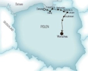 - Damenräder ausgestattet mit 7 - Gang - Nabenschaltung von Sachs, mit Rücktritt - Herrenräder ausgestattet mit 6 - Gang - Kettenschaltung von Shimano Elektrorad: 170 €, Kellys Estima 40 Die Mitnahme des eigenen Rades ist möglich. Die Beförderung eines eigenen Rades während der Tour erfolgt kostenlos auf dem Radanhänger. 10 Reisetage 1. Tag: Die 1000-jährige Hansestadt Danzig, radfreier Tag Sie reisen individuell nach Gdańsk/Danzig an, unsere Reiseleitung wird Sie im Hotel begrüßen. Wir treffen uns um 15:00 Uhr. Danach beginnt Ihr Urlaub mit einer ausführlichen Besichtigung der wunderschön restaurierten Danziger Altstadt (ca. 3 Std.). Den Abend lassen wir bei einem Abendessen in einem Restaurant an der Motlau ausklingen. Übernachtung in einem Hotel in Gdańsk. 2. Tag: per Rad ca. 35 km, Zugfahrt ca. 1 Std., per Bus ca. 20 km Die mächtigste mittelalterliche Festung Europas Nach dem Frühstück fahren wir mit dem Zug nach Malbork/Marienburg, wo wir uns die größte mittelalterliche Festung Europas, die Kreuzritterordensburg, anschauen. Am Nachmittag erfolgt die erste Radwanderung (eine einfache Strecke zum Einradeln, landschaftlich sehr schön) und anschließend ein kurzer Bustransfer nach Elbląg/Elbing. Das heutige Abendessen genießen wir im Hotelrestaurant mit ausgezeichneter polnischer Küche. Übernachtung in einem Hotel in Elbląg. 3. Tag: per Rad ca. 40 km Wo die Schiffe über Berge fahren und das Frische Haff und Frauenburg Eine morgendliche Schifffahrt auf dem Oberländer Kanal (ca. 3 St) von Jelonki nach Buczyniec bietet Ihnen unvergessliche Eindrücke! Dann unternehmen Sie eine genussvolle Radwanderung nach Frombork/Frauenburg, Nikolaus Kopernikus Stadt. Hier können Sie den berühmten Dom besichtigen (fakultativ). Auf der Route werden Sie einen Blick auf das Frische Haff werfen können. Abendessen und Übernachtung in einem Hotel in Frombork/Frauenburg. 4. Tag: per Rad ca. 50 km, per Bus ca. 60 km Auf den Spuren von Mikołaj Kopernik/Nikolaus Kopernikus und Radtour auf der ehemaligen Eisenbahnstrecke Bevor wir Frombork verlassen, besichtigen wir das schönste Werk kirchlicher Baukunst, den Dom zu Frauenburg. Dort im Nordwestturm hat Nikolaus Kopernikus mit kürzeren Unterbrechungen dreißig Jahre lang gewohnt und gearbeitet. Gegen Mittag Bustransfer nach Orneta. Per Rad erreichen Sie Ihren heutigen Standort Lidzbark Warmiński/Heilsberg, wo Sie am nächsten Tag die Burg der Ermländischen Fürstbischöfe besichtigen können (fakultativ). Abendessen und Übernachtung in einem Hotel in Lidzbark Warmiński. 5. Tag: per Rad ca. 50 km, per Bus ca. 35 km Klappernde Störche und das Orgelkonzert in Masuren Unsere heutige Rad- und Bustour soll uns nach Kętrzyn/Rastenburg führen. Wir starten mit dem Rad in Lidzbark Warmiński. Unterwegs wird die masurische Stille nur durch klappernde Störche unterbrochen. Auf dem Weg zu unserem heutigen Zielort erreichen wir per Bus Święta Lipka /Heilige Linde. Hier besichtigen wir die berühmte Wallfahrtskirche aus dem 17. Jh. und lauschen dort einem kurzen Orgelkonzert. Einfach schön. Sie werden es genießen. Abendessen und Übernachtung in einem Hotel in Kętrzyn. 6. Tag: per Rad ca. 55 km Auf dem Weg nach Giżycko/Lötzen Am Morgen starten wir mit einem kurzen Bustransfer zur „Wolfsschanze", zum ehemaligen Hitler-Hauptquartier, das wir mit einem sachkundigen Fremdenführer besichtigen. Dann gehen wir auf eine Radwanderung über Sztynort/Steinort nach Giżycko/Lötzen. Abendessen und Übernachtung in einem Hotel in Giżycko. 7. Tag: radfreier Tag Die Sommerhauptstadt Masurens Heute können wir eine landschaftlich sehr schöne Radtour um zahlreiche Seen unternehmen (ca. 50 km) oder den Tag nach Lust und Laune gestalten. Abendessen und Übernachtung wie am 6. Tag. 8. Tag: per Rad ca. 40-60 km, Schifffahrt ca. 3 Std. Nikolaiken - das Venedig des Nordens Nach dem Frühstück begeben wir uns auf eine Schifffahrt durch die schönsten masurischen Seen, die durch Kanäle verbunden sind, nach Mikołajki/Nikolaiken, das Städtchen wird oft auch Venedig des Nordens genannt. Nach einer Stadterkundung und kurzem Bummel radeln wir durch den Mazurski Park Krajobrazowy/Masurischen Landschaftspark nach Krutyń/Kruttinnen. Abendessen und Übernachtung in einer Pension in Krutyń. 9. Tag: per Rad ca. 20 km, Paddeltour ca. 2-3 Std. Die Paddeltour auf dem Fluss Krutynia Auf dem heutigen Programm stehen: eine besonders schöne Radwanderung durch die Naturreservate um Krutyń/Kruttinnen und ein unvergessliches Erlebnis auf dem Wasser - die Kajakfahrt. Auf der Krutynia gibt es viele schöne Paddelrouten. Der ruhige Fluss ist nur bis zu 90 cm tief, besondere Vorkenntnisse sind nicht notwendig! Abends erwartet uns ein stimmungsvolles Abschiedsessen am Lagerfeuer. Übernachtung wie am 8. Tag. 10. Tag Abschied von Masuren Gleich nach dem Frühstück fahren wir mit einem Bus nach Warszawa/Warschau, wo wir durch die Altstadt geführt werden. Das Ende der Tour ist am Hauptbahnhof Warszawa Centralna um ca. 16:00 Uhr vorgesehen. Individuelle Heimfahrt. |